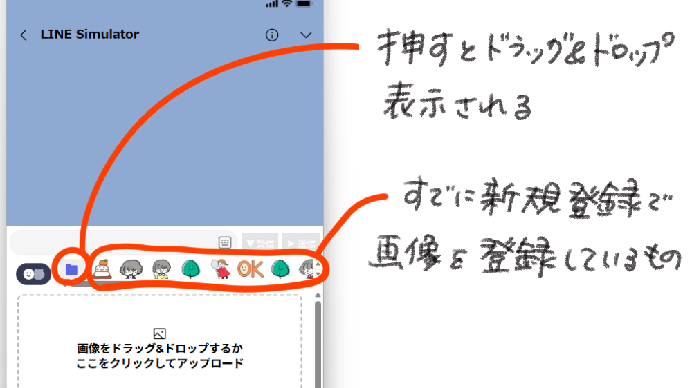 シュミレーターは作成したスタンプ・絵文字の実際のLINE上での見え方・大きさなどが確認できるとっても便利な機能!
